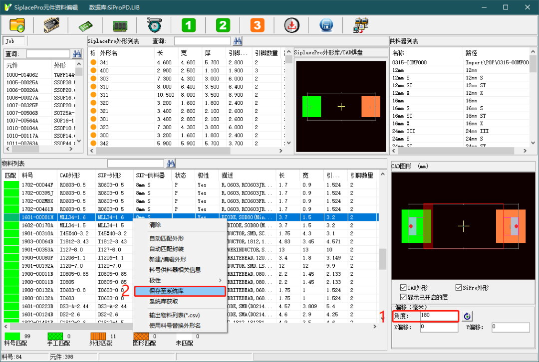 操作方法如下圖,在元件資料編輯界面設置好元件角度補償值,存入系統庫。