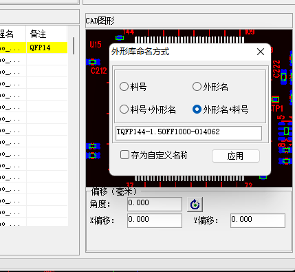 5. 此時會彈出外形庫命名方式,根據咱們自己公司的元件命名規范去給該PD庫命名,命名完成后點擊應用。