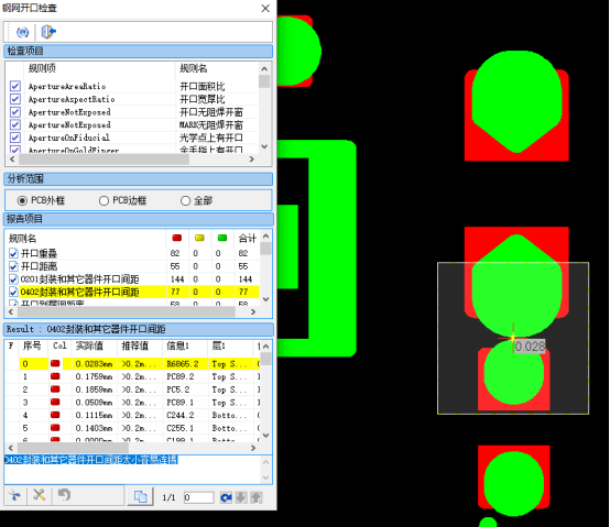 依托軟件內置工藝審查規則實現100%自動化審查,消除傳統人工設計中易出現的錯開、漏開、多開等人為錯漏問題,鋼網工藝品質穩定性得到有效保障,進一步降低了80%停線風險;同時基于軟件快速智能審查工藝細節,能夠在生產前及時識別如焊盤間距不足等工藝隱患,提前協同鋼網廠進行優化修改,從設計源頭規避后續生產問題,確保高品質焊接!